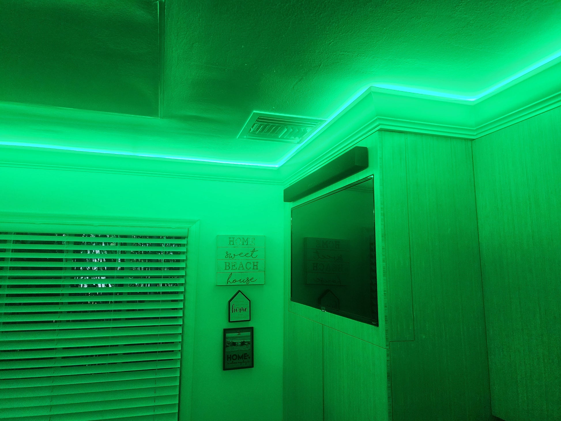 This kit includes our crown molding system with lights that change colors. You can set the mood by setting the color that you wish to display with the included remote control. you can set the system to play through several sequences of lighting effects or stop on any color you choose to for an immersive experience of colored light. Sold by the foot, simply measure your room and enter the total. We will teach you how to install it yourself so that you can transform your space with this amazing lighting.